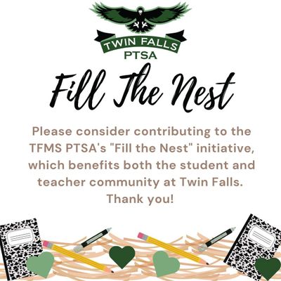 Three times a year, we reach out to Twin Falls to pinpoint the most essential items required by the staff and student body at Twin Falls. For this first "Fill the Nest" of the 2025-26 school year, we're concentrating on gathering pencils, dry-erase markers, sharpies, and colored paper!